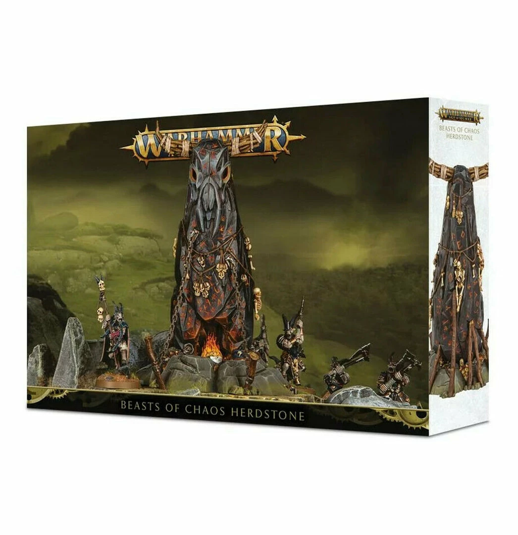 Wherever the Beasts of Chaos roam, they erect enormous megaliths called Herdstones. Wrought from the warp-infused substance of the realm in which they stand, Herdstones mark a beastherd’s territory and serve as the focal point for their anarchic bacchanals. A fusion of nature and Chaos, they spread a malign influence, crumbling the trappings of civilisation to dust and inspiring the Beasts of Chaos to fight with increased, unfailing vigour.