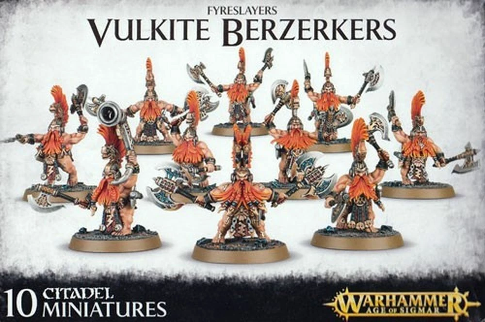 Roaring promises of violent demise at the enemy, these fighters live up to their name – a blaze of axes and ur-gold runes, legends are told of Vulkite Berzerkers ignoring wounds that would fell any lesser Fyreslayer, refusing to accept death in front of their kin. Those who carry the Horn of Grimnir are said to wield the booming voice of Grimnir himself – as the horn sounds its sonorous call, the ur-gold runes hammered into every Fyreslayer on the battlefield glow ever brighter, as the spirit of their god stirs within…