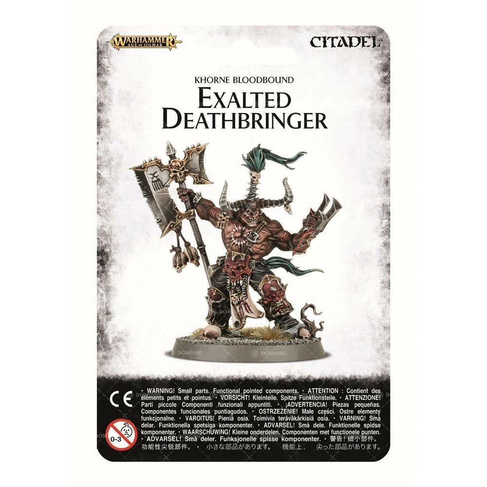 Fighting to scale the final, bloody heights of glory, the Exalted Deathbringers hew gory handholds with every worthy foe they butcher. Second only to the Mighty Lords of Khorne, each of these brutal killers is a whirlwind of violence amid the madness of battle.