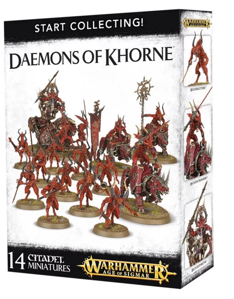 This is a great-value box set that gives you an immediate collection of fantastic Daemons of Khorne miniatures, which you can assemble and use right away in games of Warhammer 40,000! You’ll receive a Herald on Blood Throne, a set of three Bloodcrushers and a set of ten Bloodletters.