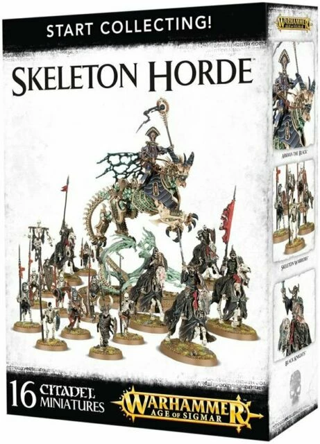 This is a great-value box set that gives you an immediate collection of fantastic Skeleton miniatures, which you can assemble and use right away in games of Warhammer Age of Sigmar! You’ll receive Arkhan the Black, a set of ten Skeleton Warriors, a set of five Black Knights and an exclusive Warscroll Battalion rules sheet, allowing you to collect, assemble and play with your new miniatures right away!