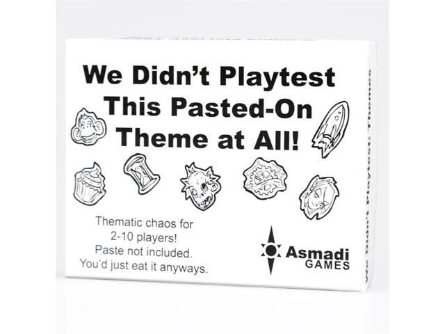 We Didn’t Playtest This Pasted-On Theme at All! brings theme to the Playtest universe – as much theme as can be added to black-and-white cards anyway. Zombies, Time Travel, Elves, Spaceships – each has its own special Thematic Conclusion event cards. This game contains all the same wacky fun as Playtest and is compatible with all of the previous expansions in addition to being playable on its own.