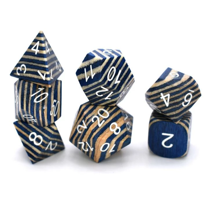 Other Wooden Yellow And Blue Technical 7ct Polyhedral Dice Set